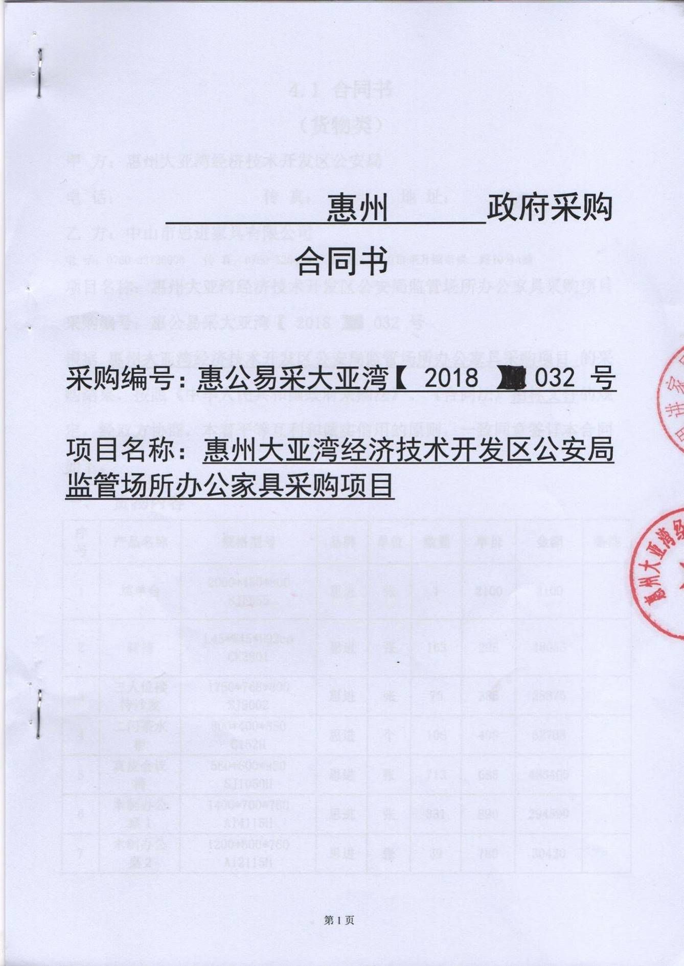 惠州大亞灣經(jīng)濟技術(shù)開發(fā)區(qū)公安局監(jiān)管場所辦公家具采購項目 |